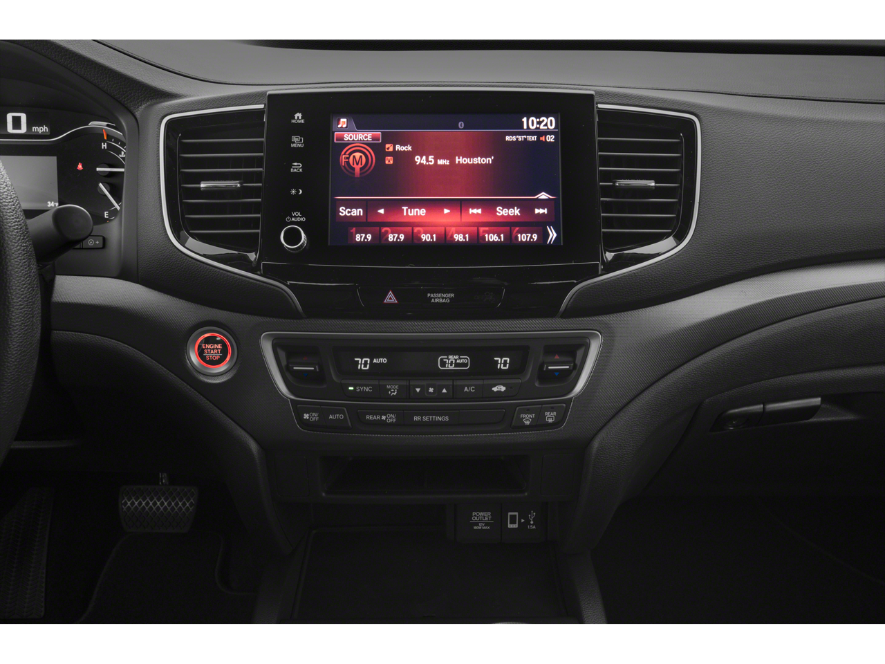 - Radio: AM/FM/MP3 Audio System -inc: 215-watt, 8" display audio w/high-resolution electrostatic touch-screen and customizable feature settings, 7 speakers including subwoofer, Bluetooth® streaming audio, auxiliary input jack, Radio Data System (RDS), speed-sensitive volume compensation (SVC), Apple CarPlay, Android Auto, HondaLink, SMS text message function, 1.5-amp USB smartphone/audio interface and 2.5-amp USB charging port